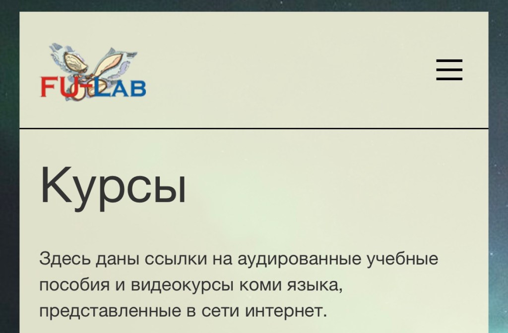 Одним из начальных этапов может стать портал «Коми кыв». Здесь можно познакомиться с правилами коми произношения, освоить основные правила грамматики, выучить базовые слова и выражения на коми языке и почитать простые тексты. В разделе «Курсы» можно также найти текстовые самоучители и видео-уроки по коми языку.