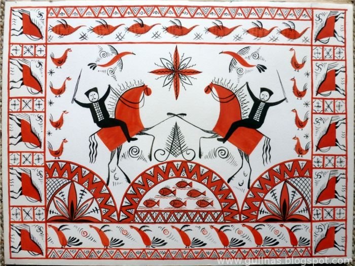 - прямые и волнистые линии: прямые линии – дороги и пути, стабильность, волнистые же – река и движение, изменчивость. Сочетание двух этих элементов может говорить о гармонии, сочетании земли и воды