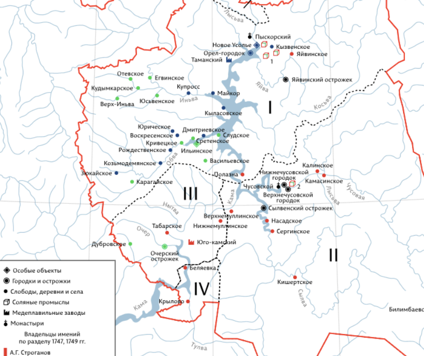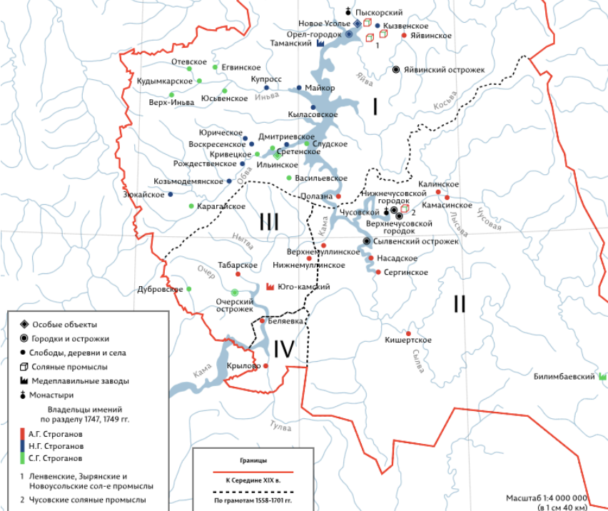 В 1558 году Григорий Строганов получает (вероятно, в ответ на свою челобитную), жалованную грамоту Ивана Грозного на гигантские территории: от границ Перми Великой (на юг от современного Соликамска) вниз по по обоим берегам Камы до устья Чусовой.