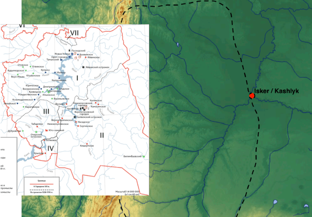 Возникает вопрос: как такое возможно? Иван Грозный не мог не знать, что это земли Сибирского ханства. На карте ниже видно: столица ханства, Искер (Кашлык), находится на границе этой зоны. Тем не менее, он жалует эти земли Строгановым.